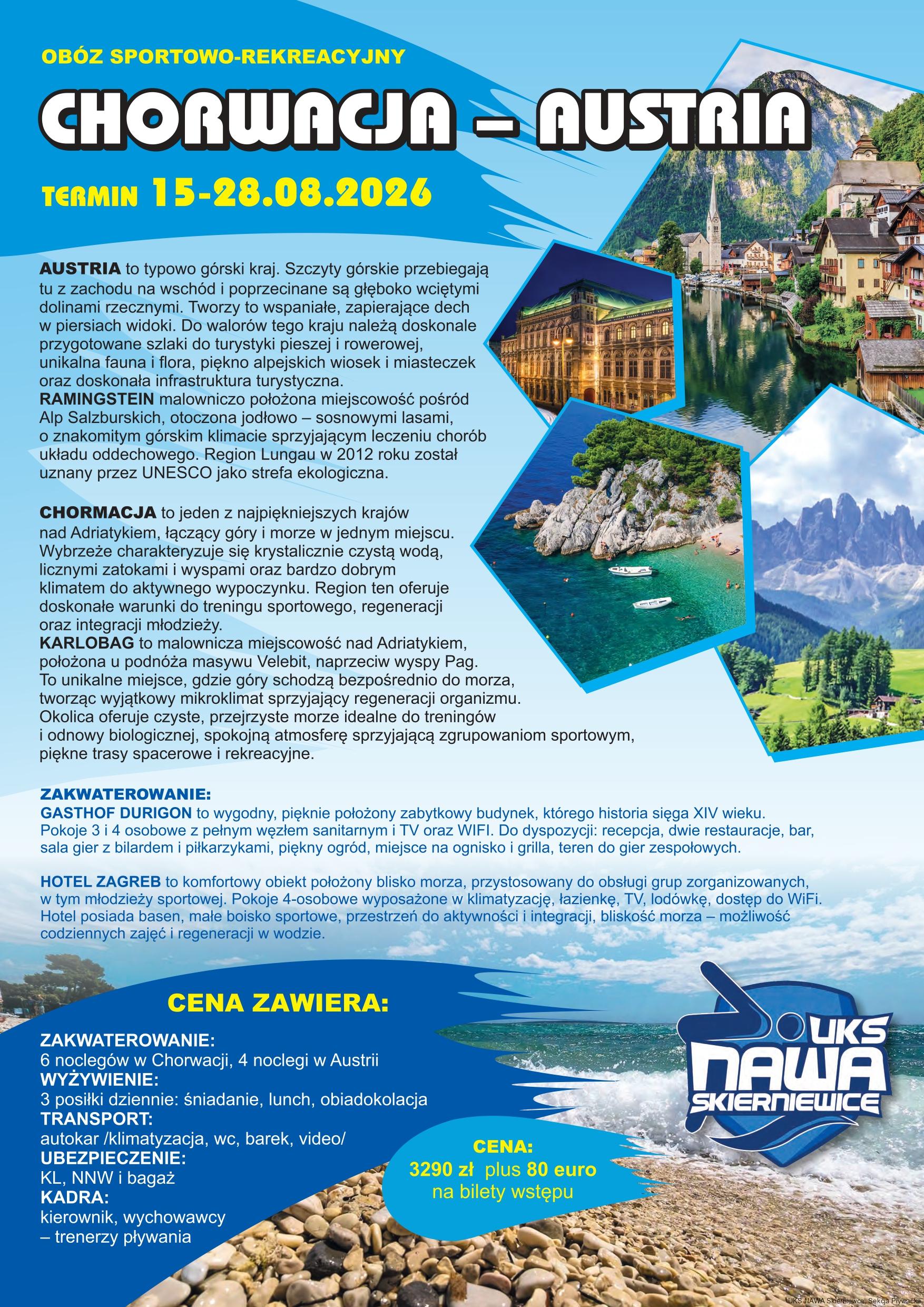 🏊♂️ OBÓZ SPORTOWO-REKREACYJNY 🇭🇷 CHORWACJA – 🇦🇹 AUSTRIA